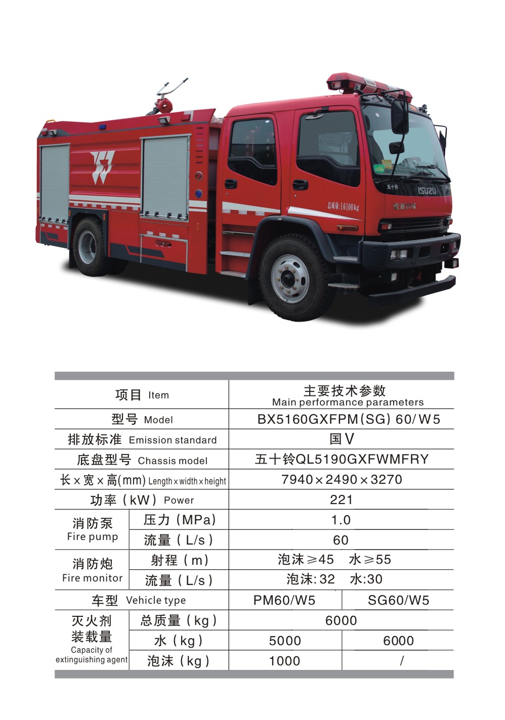 BX5160GXFPM(SG)60/W5 水罐泡沫消防車